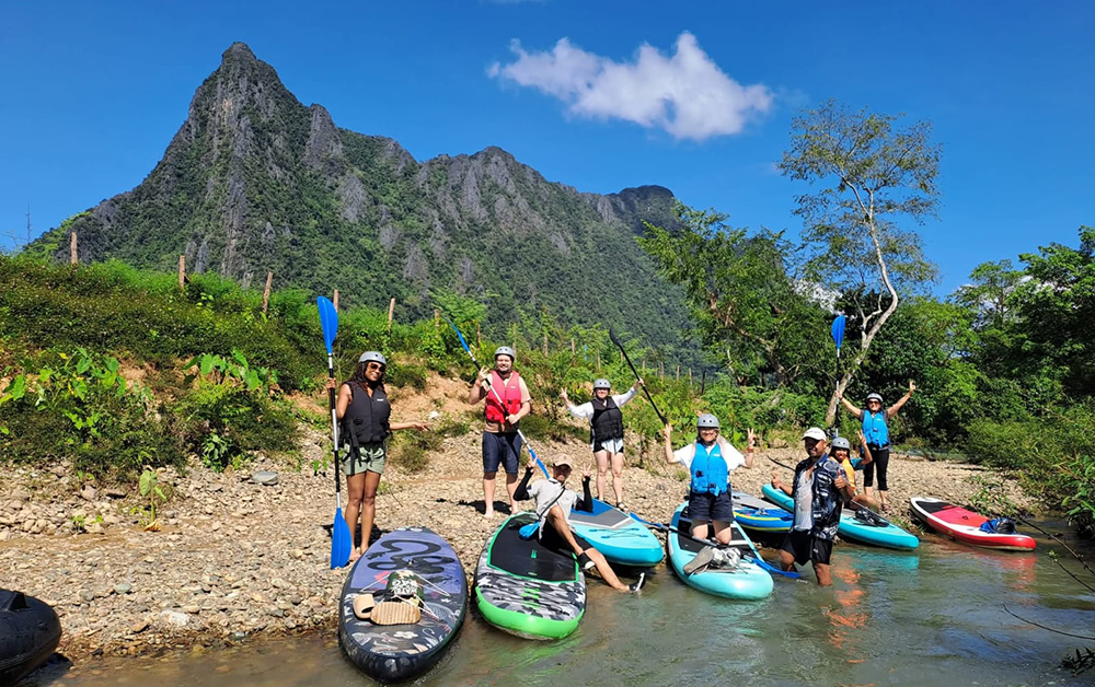 Glide along the emerald ribbon of the Nam Song as towering limestone cliffs rise dramatically on either side, their reflections shimmering across the still morning water. Led by a private naturalist guide, you’ll drift past quiet riverside villages, bamboo bridges, and secluded bends known only to locals — places where the valley reveals its most peaceful and intimate moments. Every detail is curated for comfort, calm, and connection to the landscape, transforming a simple paddle into a journey through Vang Vieng’s wild, unspoiled beauty.