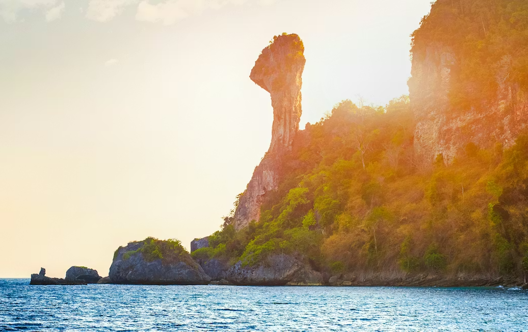 The Andaman Coast is tropical and warm, with a pronounced monsoon that shapes the rhythm of island life. Expect turquoise waters, dramatic limestone cliffs, and lush rainforests.